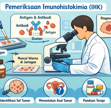 Imunohistokimia adalah pemeriksaan lanjutan yang sangat penting dalam diagnosis modern, terutama untuk penyakit kanker. Dengan teknologi ini, identifikasi jenis sel dan karakter tumor menjadi lebih akurat sehingga membantu dokter dalam menentukan terapi terbaik bagi pasien.